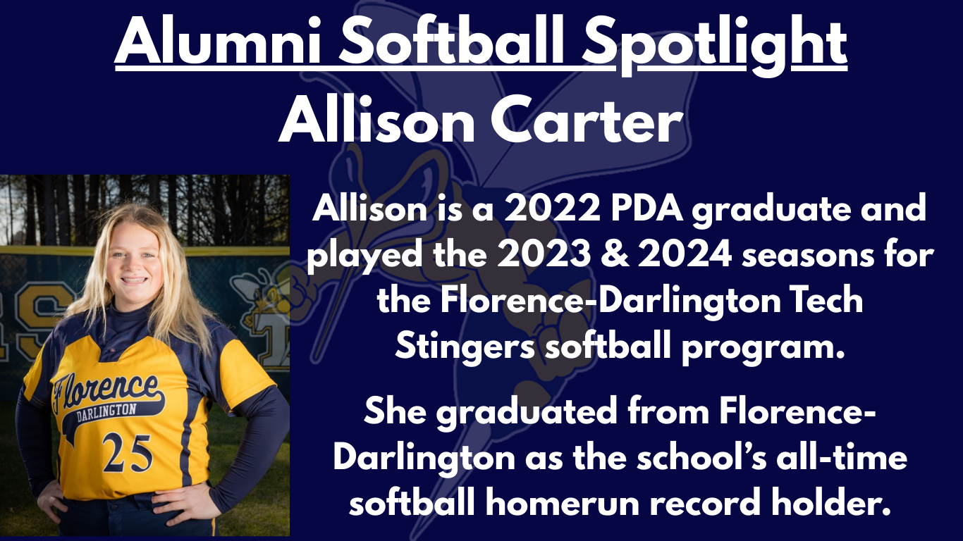 Congratulations to PDA alum Allison Carter (Class of 2022) on becoming the new all-time softball homerun record holder at Florence-Darlington Tech!